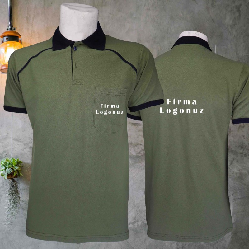 Yeşil-Siyah Cepli Polo Yaka Tişört is0010